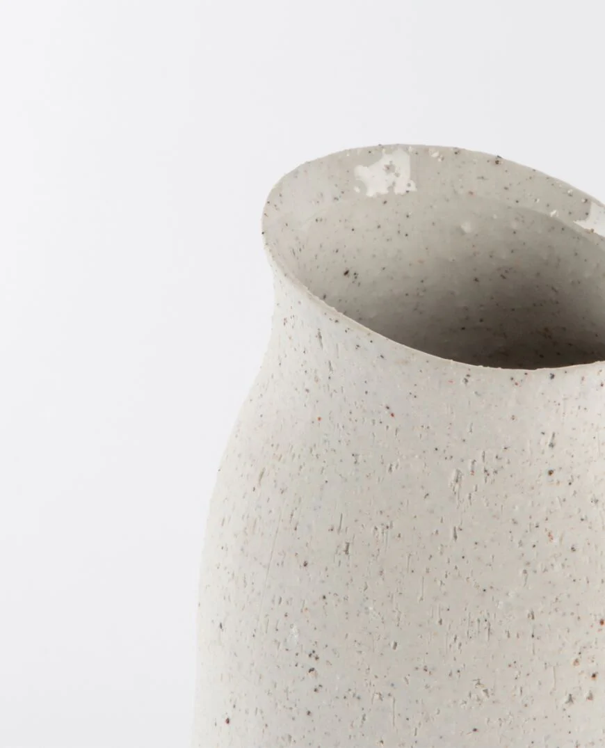 Organic and sculptural in form with a raw, textured stone outer surface, and a glossy glaze on the inside. A suitable vessel to hold a bouquet of everlasting blooms or style on its own. Available in two sizes. Perfect as: