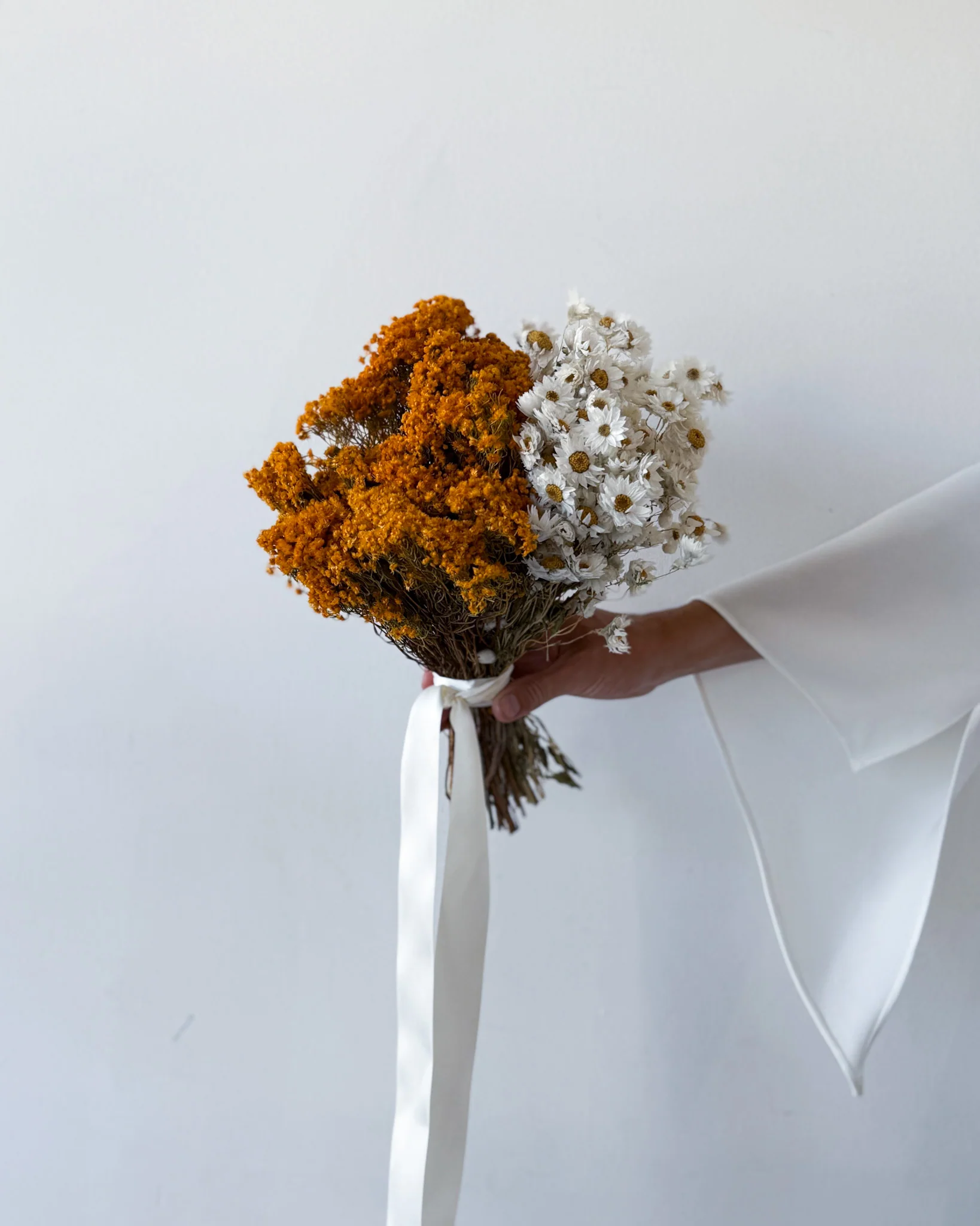 Celebrate the simple beauty of a happy burst of dried daisies and dried morrison. This sweet creation from The Palmier is perfect for any occasion or as a simple, thoughtful gesture in your home.
