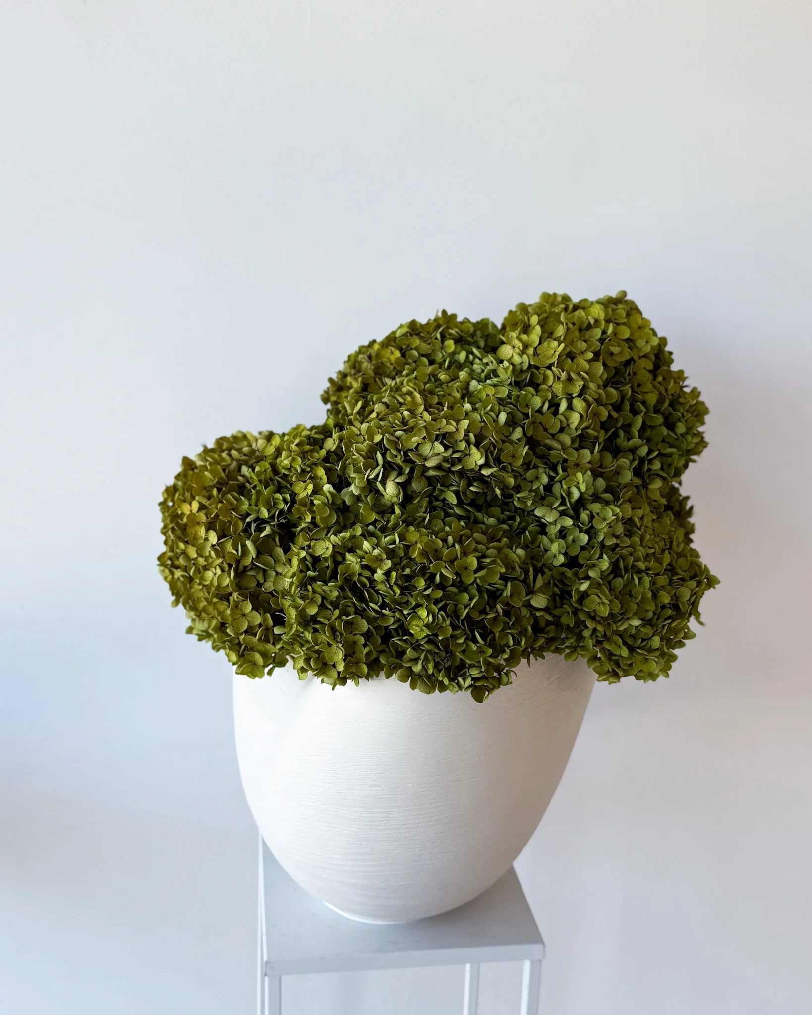 Elevate your space with CALLA, a stunning arrangement of luxurious preserved hydrangeas en masse, beautifully housed in our sculptural Morph Bowl in Ivory. Perfect for adding a timeless touch to your dining table, entry console or island bench.